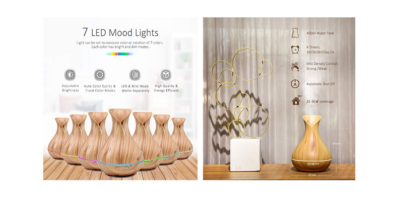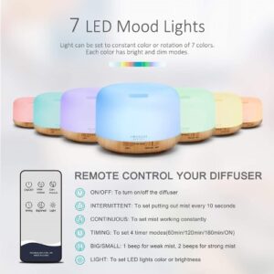 ![]() | ![]() | IOLOC Aroma Diffuser 550ml Essential Oil Diffuser, Ultrasonic Home Fragrance Aroma Air Diffuser, Humidifier, Large 550ml Capacity, 7 Colour LED Mood Light, Auto Shut-Off, Light Wood Grain. | ![]() |