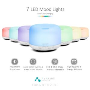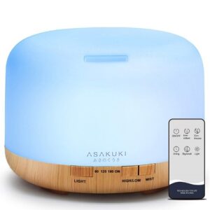 ![]() | ![]() | ASAKUKI Aroma Diffuser 500ml Ultrasonic Essential Oil Diffuser, 5-IN-1 Aromatherapy Vaporiser/Humidifier, Timer, Safety Auto-Off Switch, 7 enhancing LED Light Colours. | ![]() |